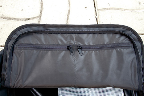 Water resistant media pocket under flap.